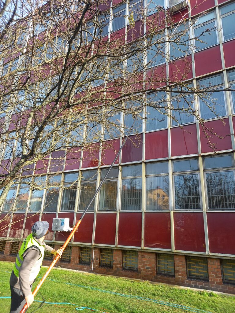 Mycie okien do wysokości 20 m z powierzchni Ziemi to dla Nas nie problem. Zlecenie dla stałego klienta zostało wykonane szybko i perfekcyjnie. Ogrom powierzchni nie robi już na Nas wrażenia. Do budynku użyteczności publicznej w końcu zajrzało Słońce.